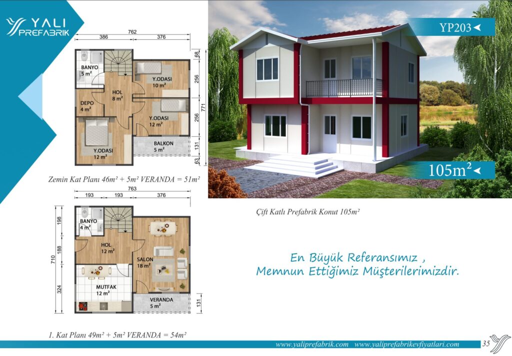 YP203 – 105 M2 Dubleks Prefabrik Ev